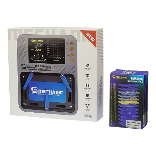 Переднагрівач з РК-дисплеєм Mechanic Heat Kit i15 для ремонту плат, з реболлінг-платформами та BGA трафаретами iPhone X-15 Pro Max, 48214,